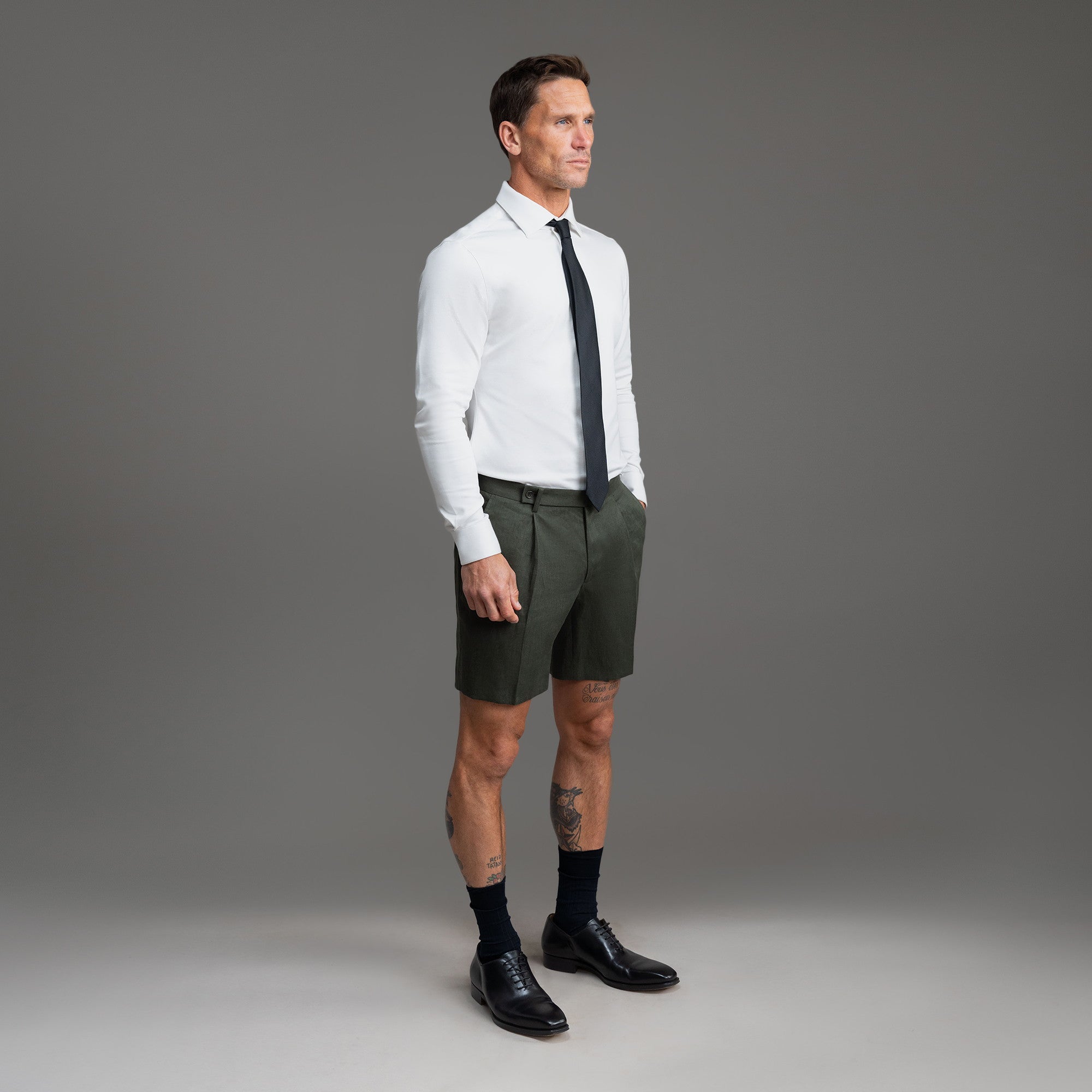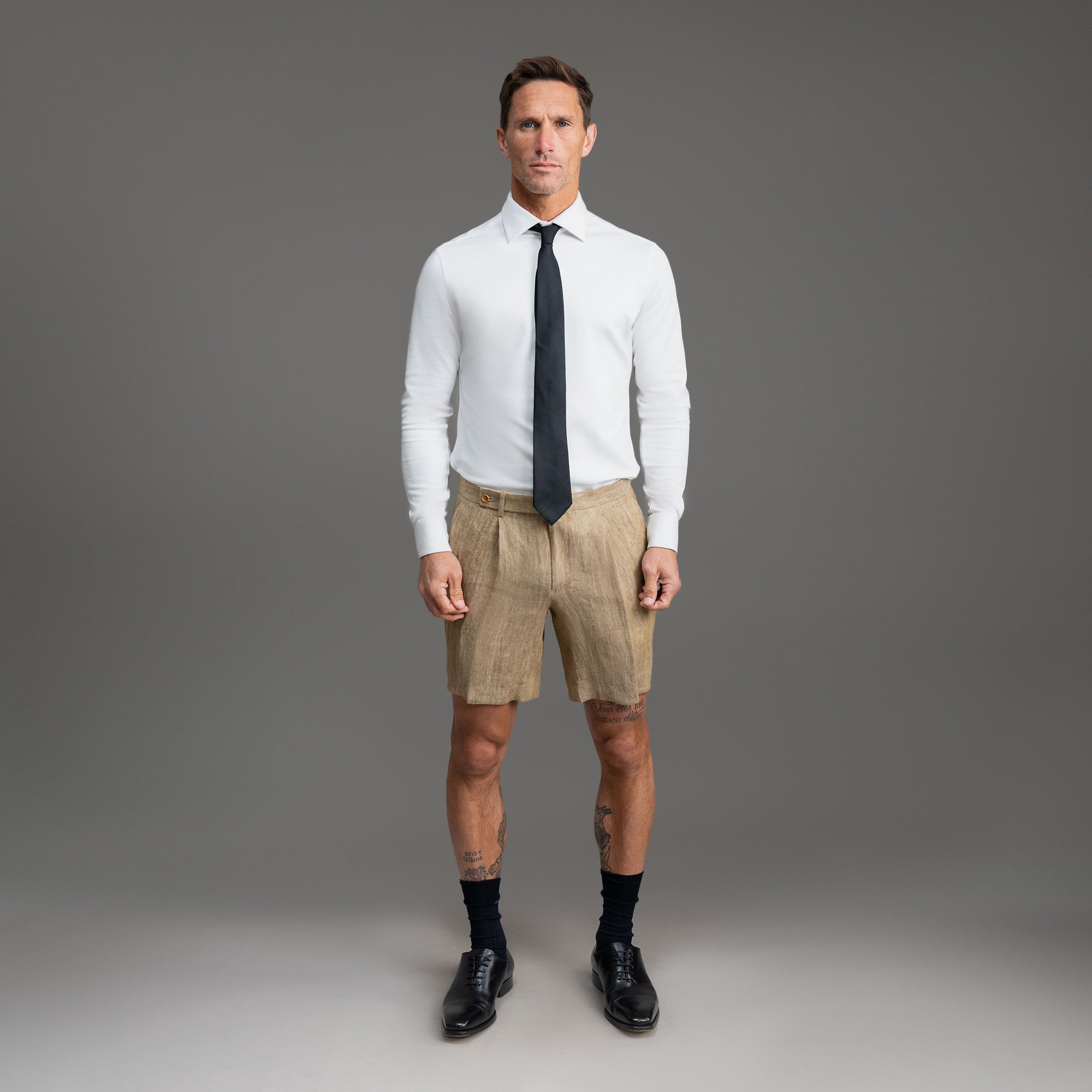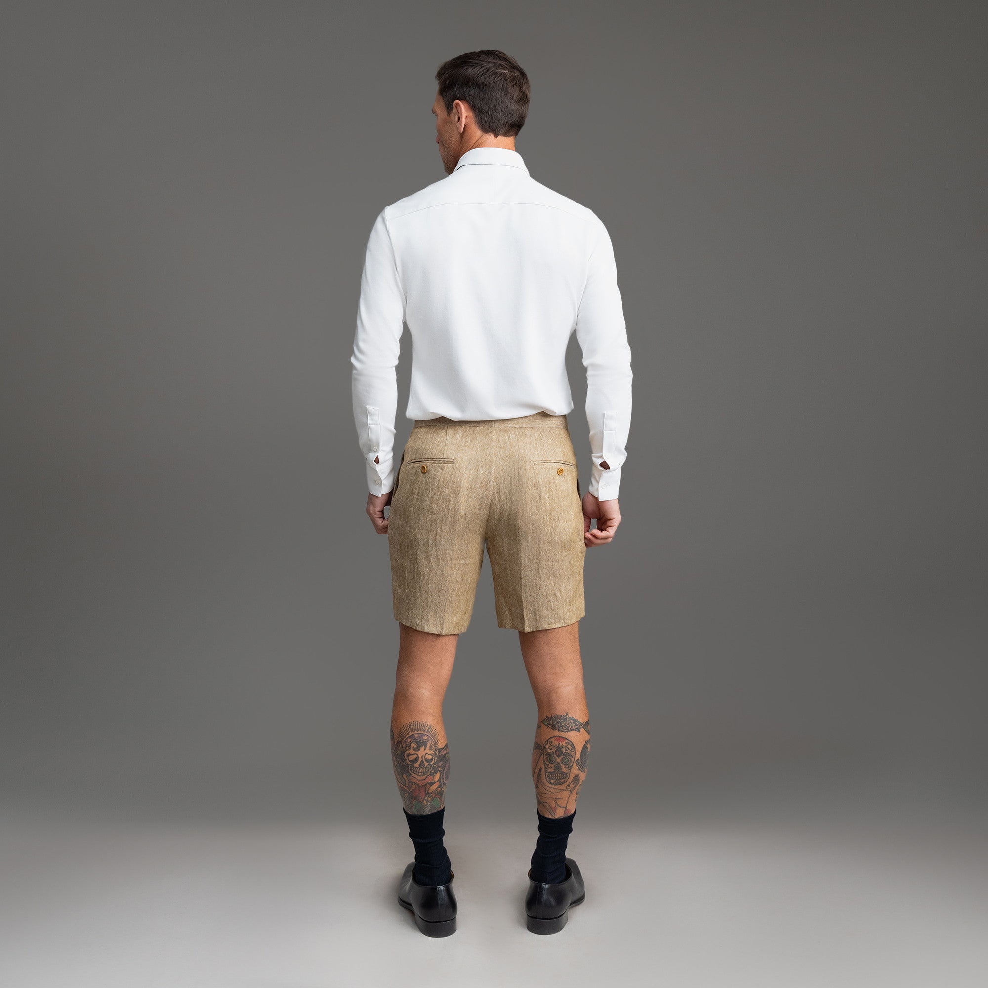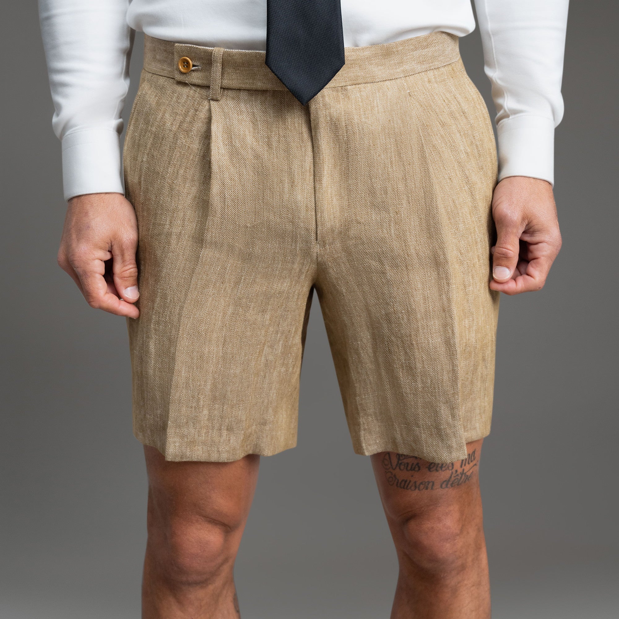 This is a dressier pair of shorts made with Japanese linen. Customize the fit. including length and slimness.
