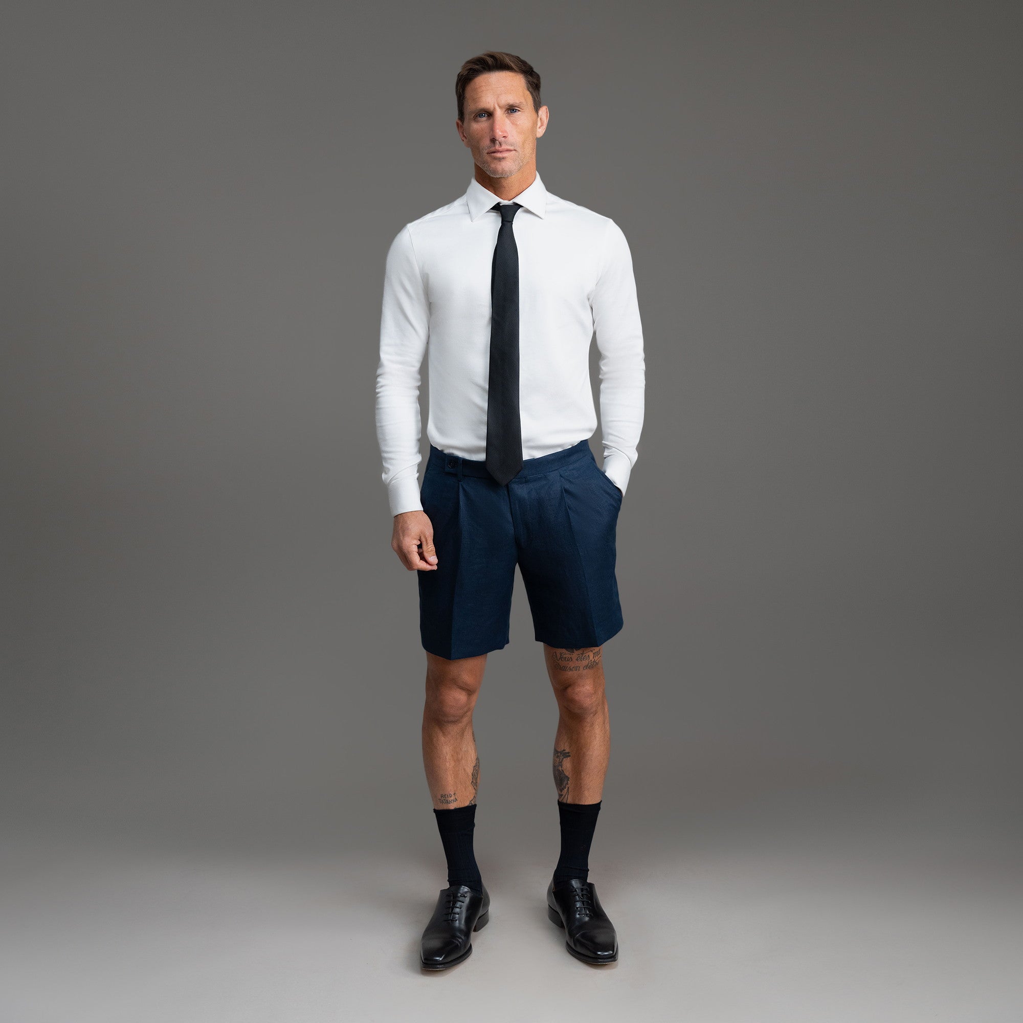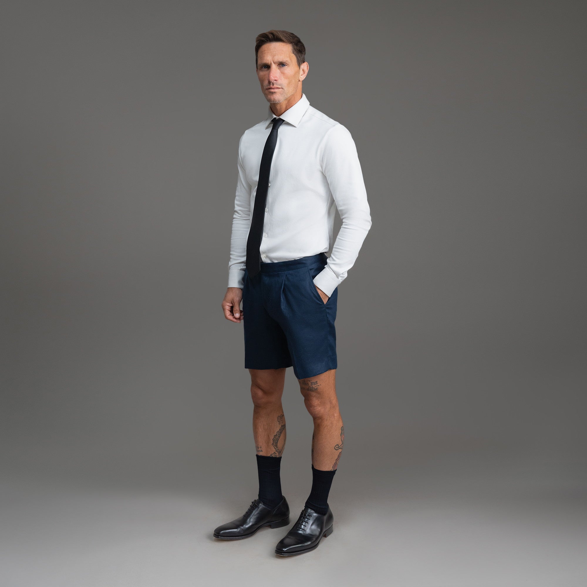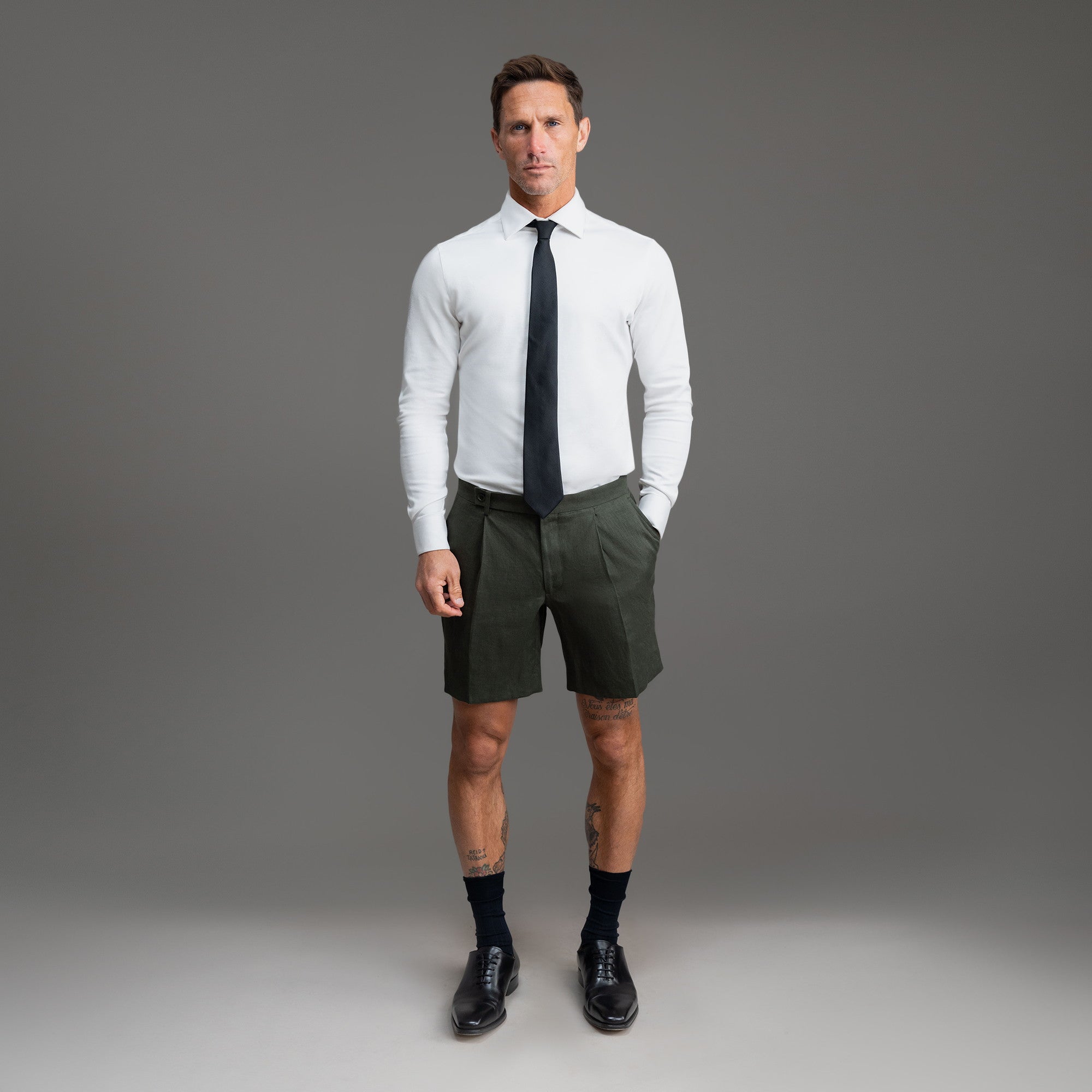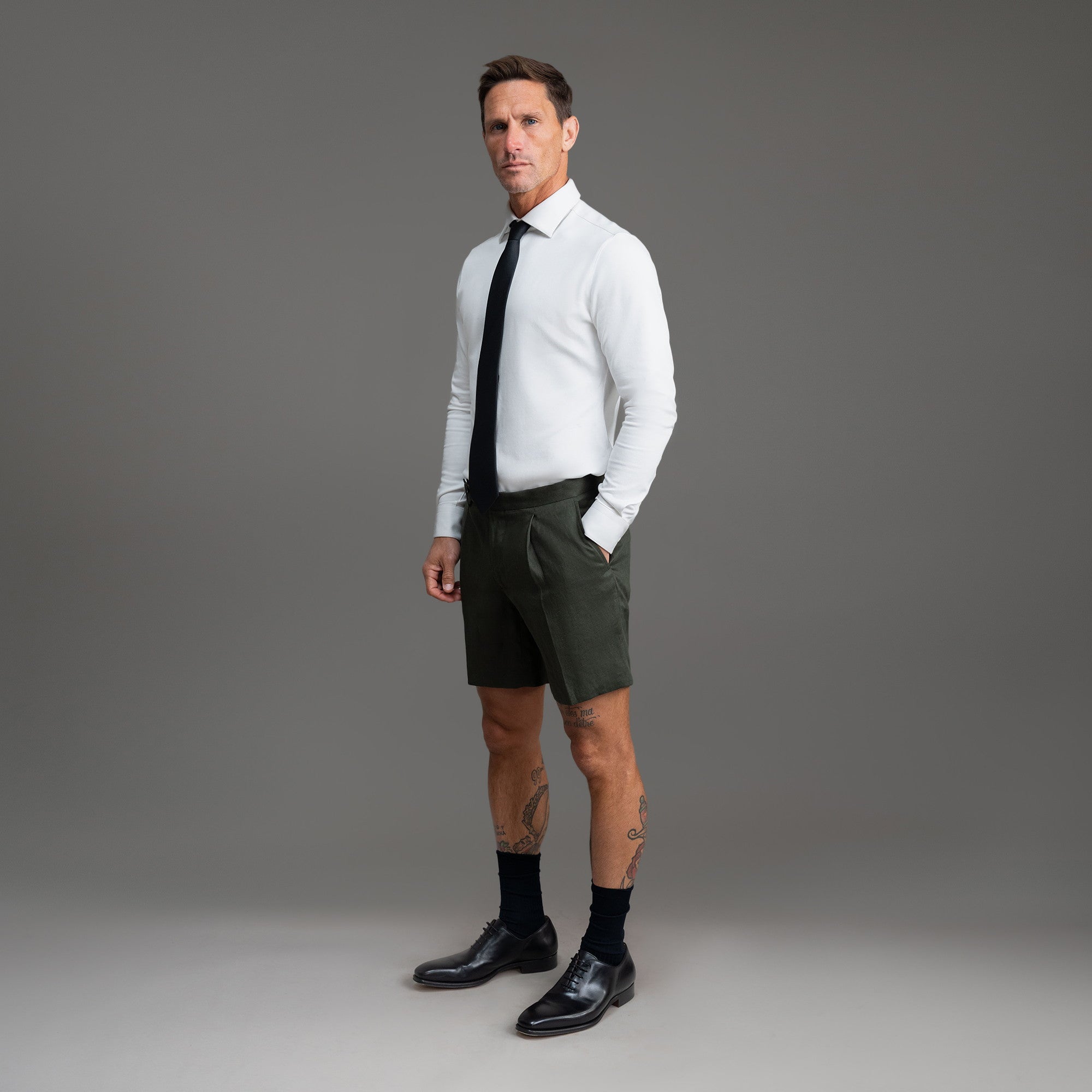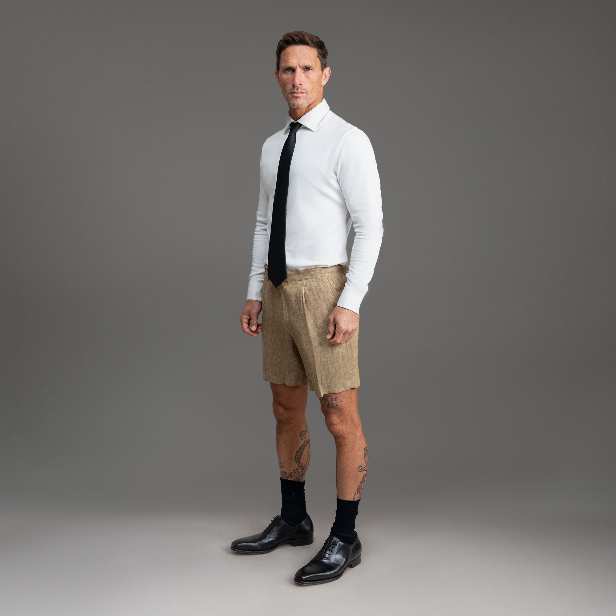 This is a dressier pair of shorts made with Japanese linen. Customize the fit. including length and slimness.
